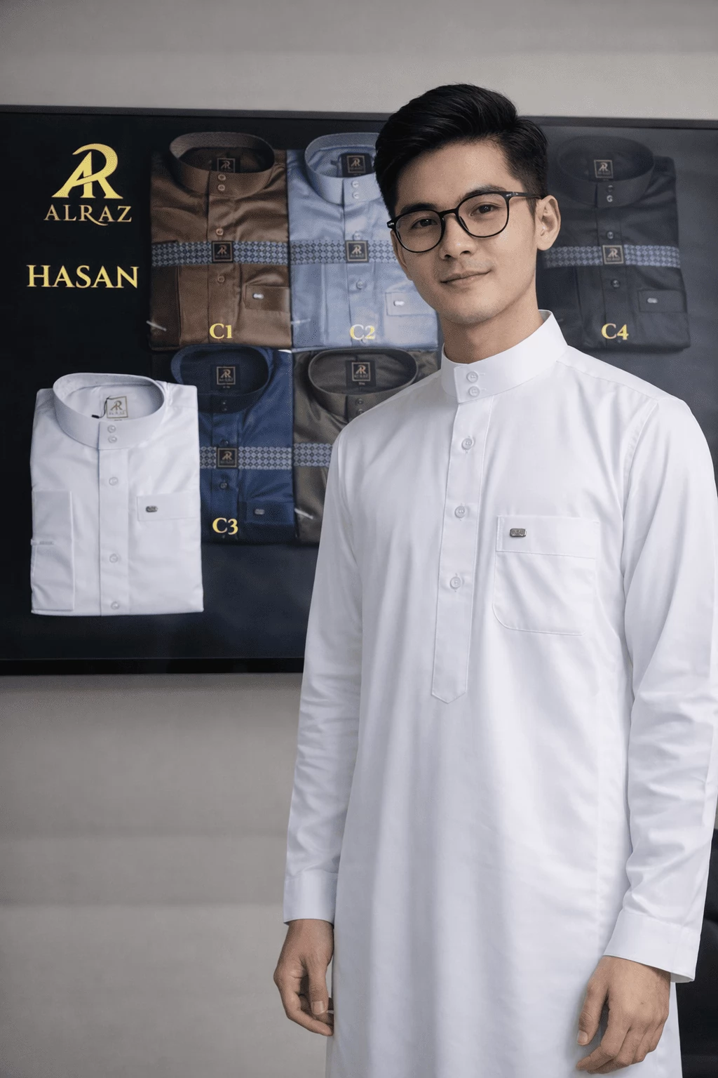Kini tersedia Jubah Alraz Model Hasan, jubah favorit dengan desain rapi, modern, dan tampilan eksklusif.