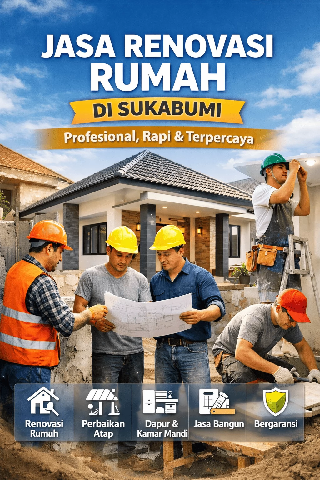 Tim kami berasal dari Sukabumi dan sudah berpengalaman menangani berbagai proyek renovasi rumah.