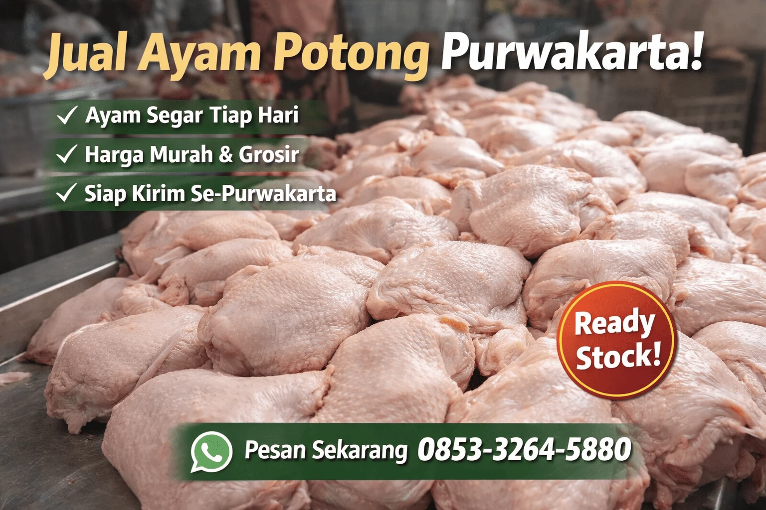 Jika Anda butuh supplier tetap ayam potong di Purwakarta, kami siap bekerja sama jangka panjang bersama Anda.
