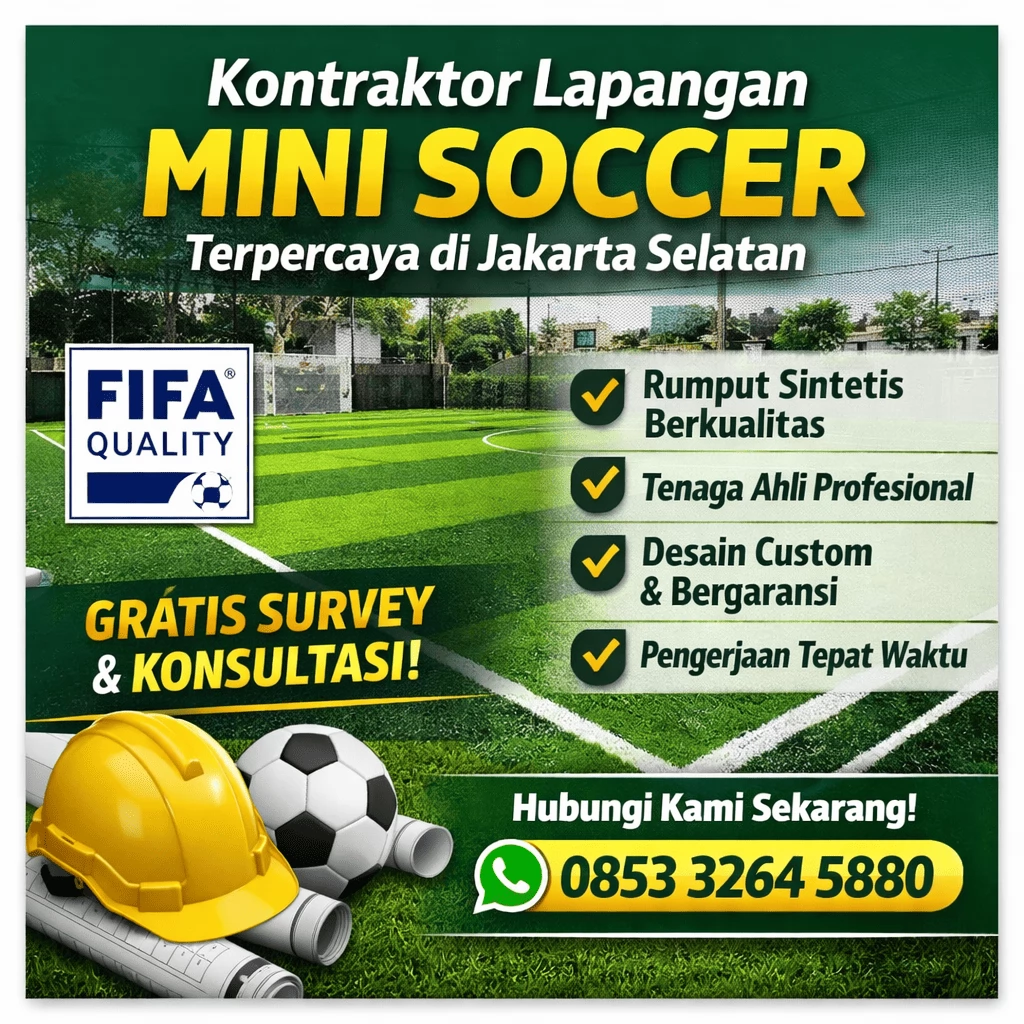 Sedang mencari kontraktor lapangan mini soccer terpercaya di Jakarta Selatan? Kami hadir sebagai solusi profesional untuk pembangunan lapangan mini soccer berkualitas tinggi, tahan lama, dan sesuai standar permainan modern.